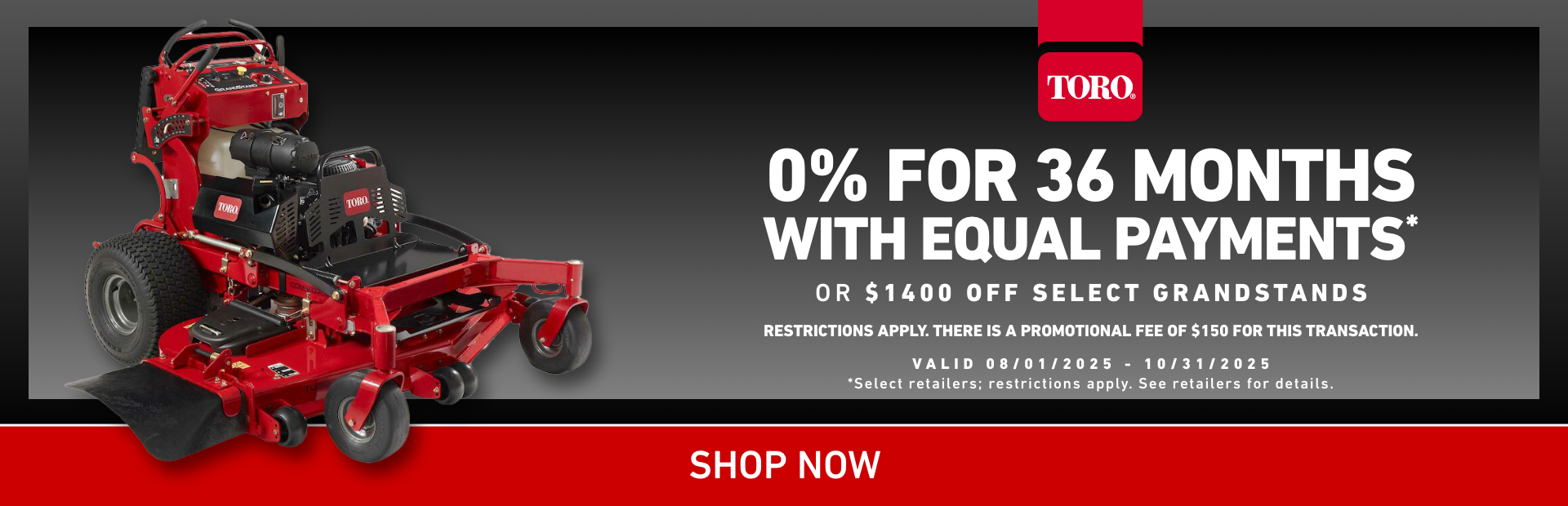 Purchasing Toro products is easy and affordable with special Toro sponsored finance promotions available through your participating independent Toro dealer. Visit your participating Toro dealer today to apply!